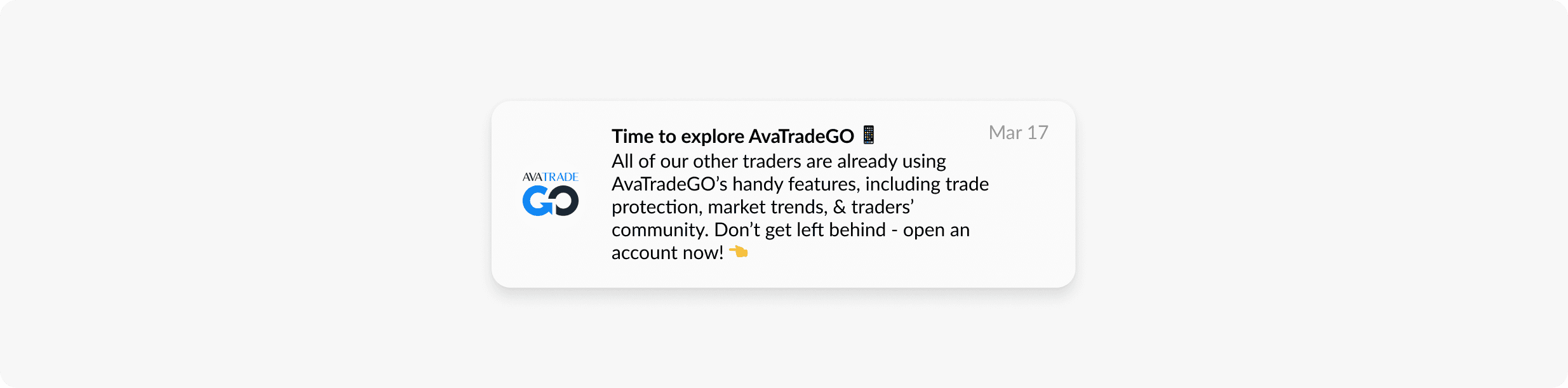 • Personalized motivation: Messages highlighted AvaTrade’s unique value and welcome bonuses, addressing potential concerns and driving action:
